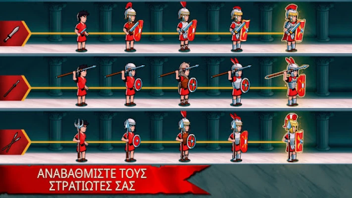 Το ταξίδι σας είναι γεμάτο ατελείωτες προκλήσεις και ευκαιρίες για αναβάθμιση. Επιβιώστε σε πάνω από 1500 κύματα εχθρικών επιθέσεων και εξερευνήστε μια νέα λειτουργία άμυνας πόλης που θα δοκιμάσει την τακτική σας ικανότητα. Ανακαλύψτε και ξεκλειδώστε πάνω από 35 διαφορετικά ρωμαϊκά στρατεύματα, αντιμετωπίζοντας 4 ευρωπαϊκές φατρίες, καθεμία με πάνω από 12 μοναδικές μονάδες. Αναπτύξτε τους 7 ήρωές σας με ειδικές δεξιότητες, ξεκλειδώστε πάνω από 18 ισχυρές ικανότητες και χρησιμοποιήστε ένα σύστημα με 6 τύπους καρτών ενίσχυσης, αναβαθμίζοντάς τες σε ακόμα πιο ισχυρές μορφές. Με πάνω από 1000 αναβαθμίσεις πόλεων, η στρατηγική εξέλιξη είναι ατέλειωτη.