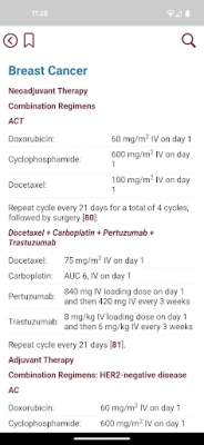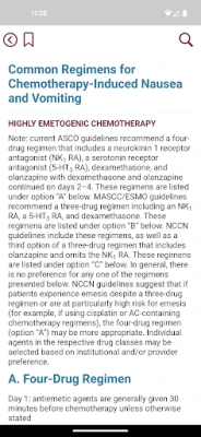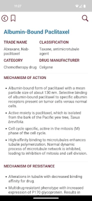 Η εφαρμογή διευρύνει την κατανόησή σας με ένα ειδικό κεφάλαιο αφιερωμένο στις αντιεμετικές θεραπείες, καλύπτοντας τόσο την οξεία όσο και την καθυστερημένη ναυτία/έμετο. Περιλαμβάνει διαγράμματα φαρμακευτικών δομών και μεταβολικών μονοπατιών για πολλούς παράγοντες, ενισχύοντας την κατανόηση της κλινικής φαρμακολογίας. Θα βρείτε επίσης μια περιεκτική συζήτηση για τις ειδικές εκτιμήσεις, τις αλληλεπιδράσεις φαρμάκων και τις τοξικότητες. Ένα επιπλέον τμήμα καλύπτει αναλυτικά τα σχήματα χημειοθεραπείας για όλους τους κύριους τύπους καρκίνου, παρέχοντας παράλληλα μια επισκόπηση των βασικών αρχών της φαρμακευτικής θεραπείας του καρκίνου, καθιστώντας την έναν πλήρη και πολύτιμο εκπαιδευτικό και κλινικό οδηγό.